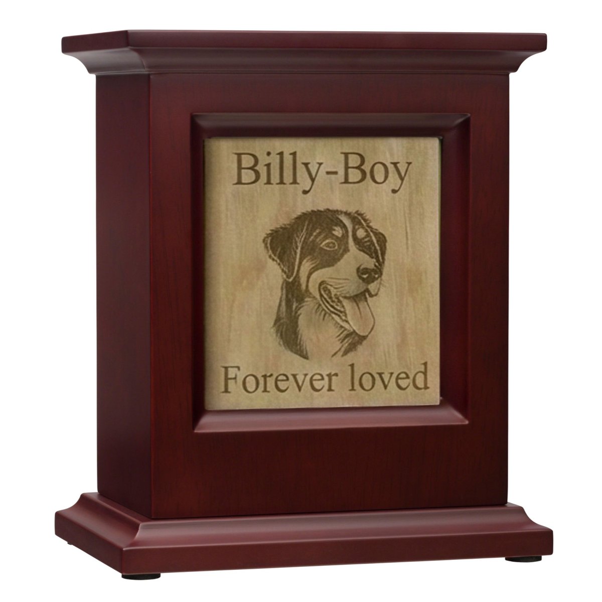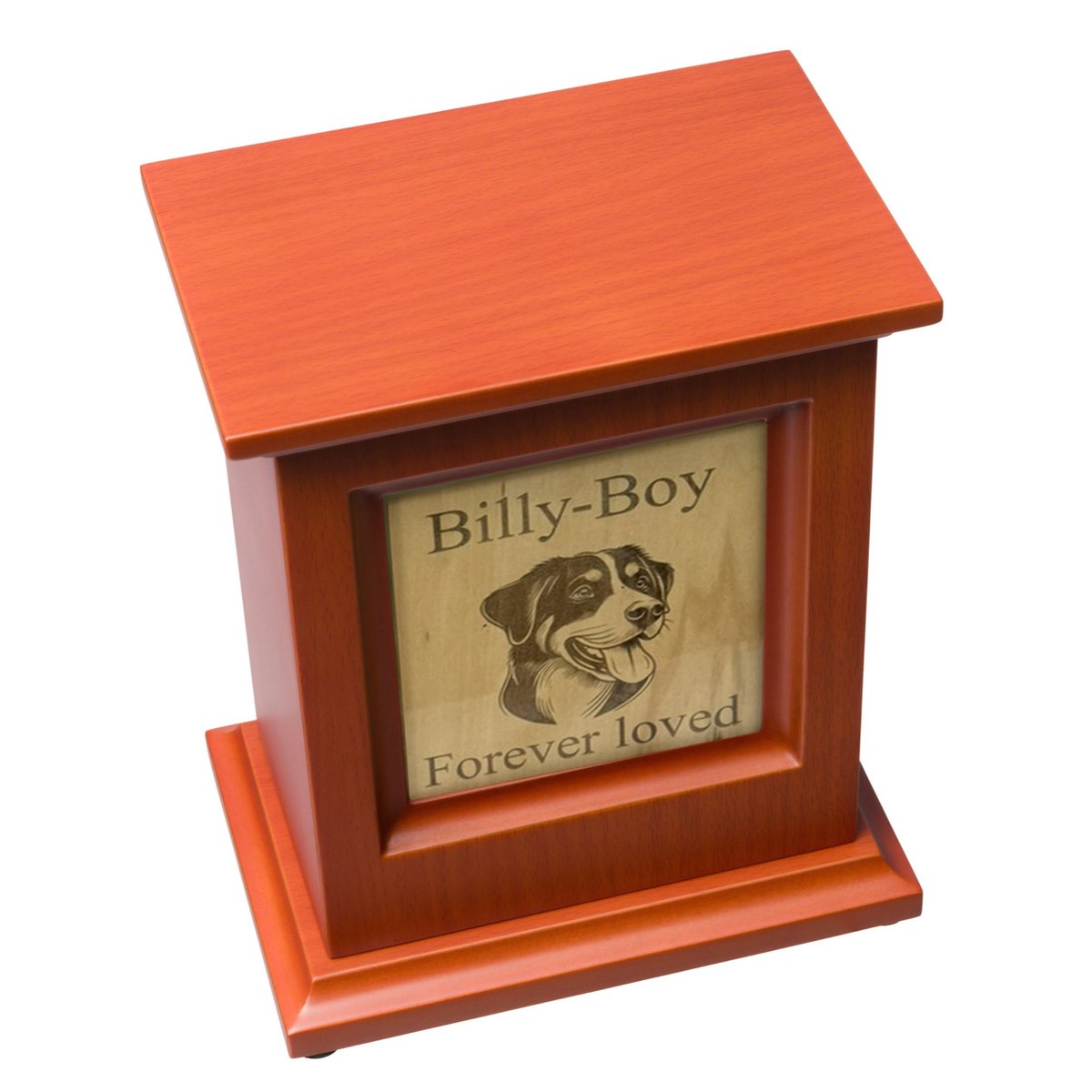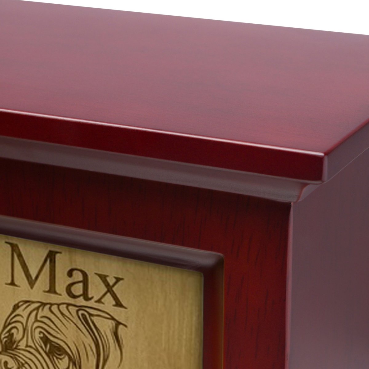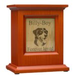 Each urn is handcrafted from sustainably harvested Hevea brasiliensis wood. The urn is recison crafted, reflecting the same care and attention your companion deserved. Choose from three timeless finishes—warm Cherry, natural Oak, or rich Walnut—to complement your family’s living space.